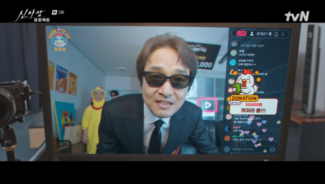 16일 전파를 탄 tvN 월화드라마 '신사장 프로젝트'에서는 신사장(한석규 분)은 '꼬끼오'의 라이브 방송에 출연, 엉뚱한 매력을 선보였다.