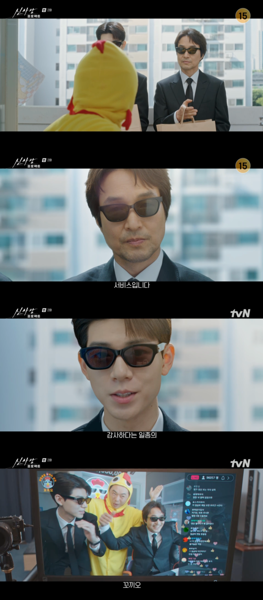 결국 신사장은 조필립(배현성 분)과 함께 직접 '꼬끼오'를 찾아가는 파격적인 행보를 보였다. 잘 차려입은 수트에 선글라스까지 착용한 신사장은 서비스라며 치킨을 건넸고, 조필립은 "그동안 저희 치킨을 많이 사랑해주셔서 감사하다는 의미의 이벤트"라고 설명했다.