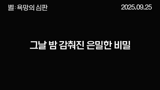 유일한 목격자인 콩스탕은 곧 사건의 중심으로 몰리며 '살인자'라는 낙인 속에 끝없는 의심과 무차별적인 비난에 직면한다. 섬세한 감정선과 어두운 욕망이 교차하는 강렬한 영상은, '벨: 욕망의 심판'이 미스터리를 넘어 사랑, 진실, 그리고 죄의 경계까지 흔드는 에로틱 미스터리임을 예고한다.