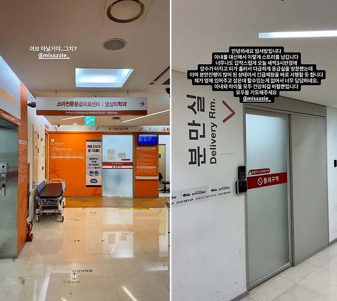 김지혜의 남편인 그룹 파란 출신 최성욱은 8일 자신의 SNS에 병원 분만실과 소아전문응급의료센터 사진을 공개하며 “아내를 대신해 남긴다”는 메시지와 함께 상황을 알렸다.