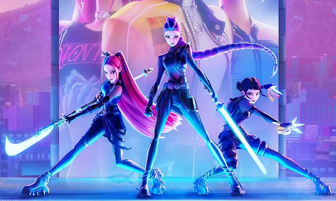 넷플릭스 애니메이션 영화 ‘케이팝 데몬 헌터스’(이하 ‘케데헌’·포스터) 오리지널사운드트랙(OST)이 연일 새로운 기록을 세우고 있다. 이번에는 미국 빌보드 메인 싱글 차트 ‘핫 100’ 67년 역사상 애니메이션 캐릭터 가수 곡으론 1위에 가장 많이 오른 곡이 됐다.