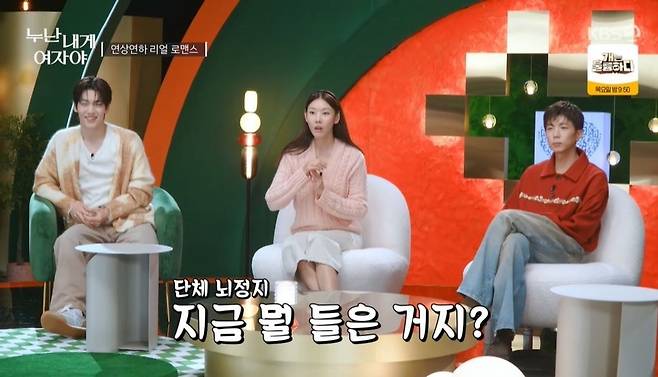 3일 방송된 KBS2 '누난 내게 여자야'(이하 '누내여') 2회에서는 한혜진, 황우슬혜, 장우영, 투바투(투모로우바이투게더) 수빈이 출연했다.
