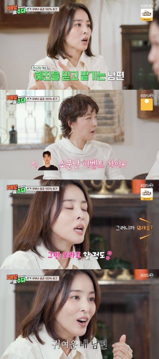 한혜진은 “드라마, 연극할 때 항상 밥차라든지 (이벤트를 해준다). 공연도 5번인가 왔다. 그만 오라고 할 정도다. 드라마도 꼭 챙겨 본다. 우리 다음 드라마는 안 본다. 시청률 더 나올까봐”라며 기성용의 사랑꾼 면모를 자랑했다.