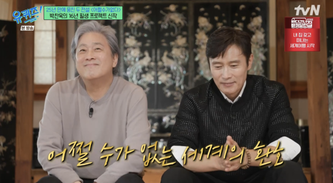 24일 방송된 tvN ‘유 퀴즈 온 더 블럭’에서 박찬욱 감독은 이병헌을 향해 “슈퍼스타지만 까다롭지도, 예민하지도 않다. 사실 스타가 예민하면 주변이 힘들어지기 마련인데, 이병헌은 현장 분위기를 오히려 더 유쾌하게 만든다. 그래서 늘 고맙고 또 놀랍다”고 칭찬을 아끼지 않았다.