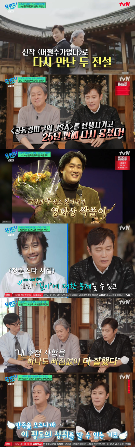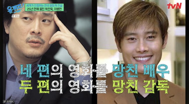 [OSEN=박소영 기자] 두 번 망한 감독과 네 번 망한 배우. 하지만 이젠 한국 영화계를 이야기할 때 결코 빼놓을 수 없는 두 사람이다. 박찬욱 감독과 이병헌 배우가 ‘유 퀴즈 온 더 블럭’에 떴다.