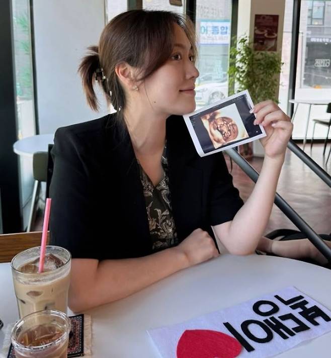 그는 또 초음파 사진을 들고 은은하게 미소 짓는 모습이 담긴 사진을 추가로 동봉하며 '아이 둘 엄마'의 행복을 전했다.