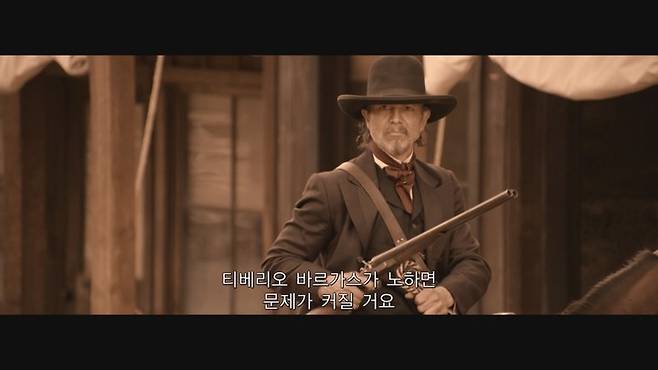 함께 공개된 메인 예고편은 현상금 사냥꾼 맥스(크리스토프 왈츠)와 그의 원수 조 크리븐스(월렘 데포)가 총 없이 살의 가득한 말로 서로를 겨누는 대화 장면으로 시작하며 극도의 긴장감을 조성한다.