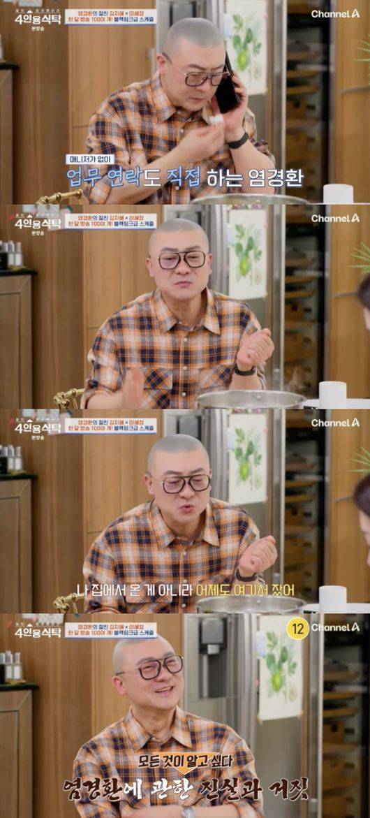 10일 방송된 채널A ‘절친 토큐멘터리-4인용식탁’(이하 4인용식탁)에는 염경환이 출연해 절친 이혜정, 김지혜를 초대했다.