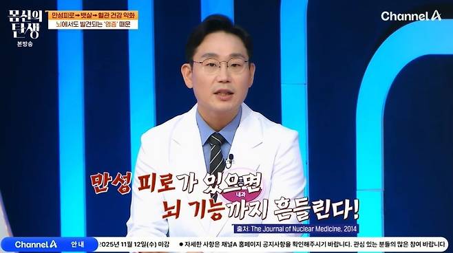 만성 피로와 피곤함이 '이것' 때문에 단순한 피로를 넘어 고통과 통증의 영역으로 넘어갈 수 있다고. 전문의는 "만성 피로 환자 대상으로 뇌를 촬영했더니 '이것'이 발견했다"라며 "피로감은 물론이고 뇌 기능에도 영향을 준다. 우울감, 집중력 감소, 뇌 기능이 안개가 낀 것처럼 뿌옇게 느껴지는 브레인포그 증상까지 유발한다"라고 설명했다.