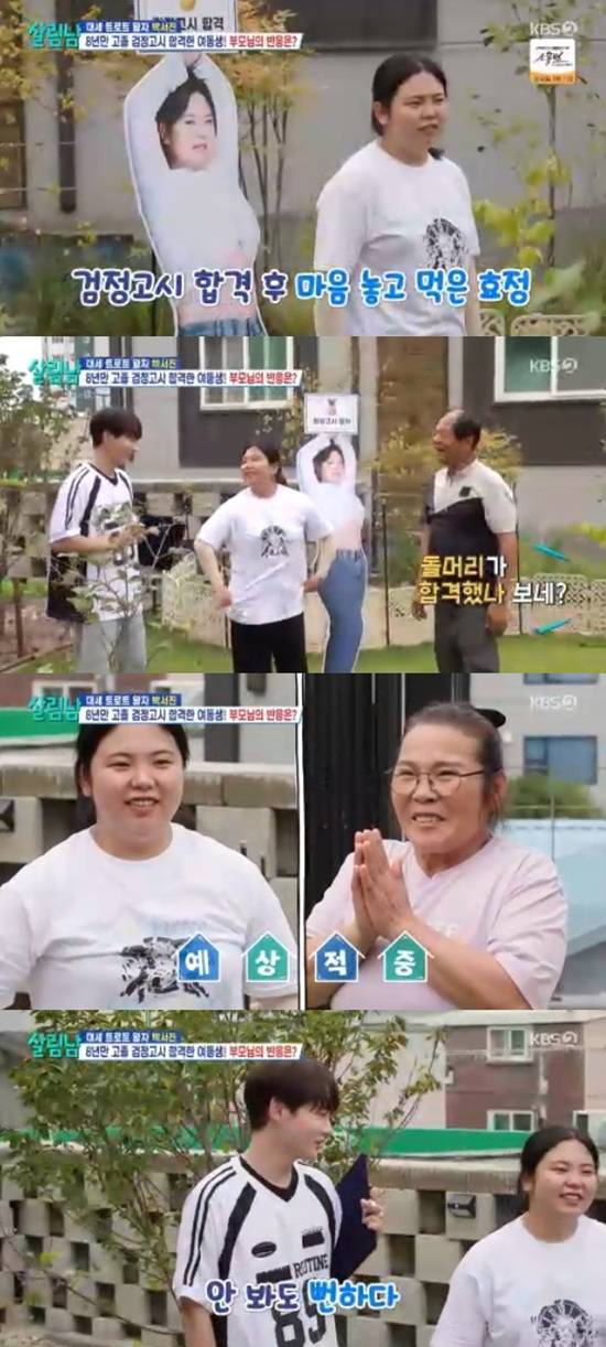 박서진과 박효정은 서프라이즈로 검정고시 합격 소식을 알리려고 했다. 박서진은 박효정의 등신대까지 준비해 왔다.