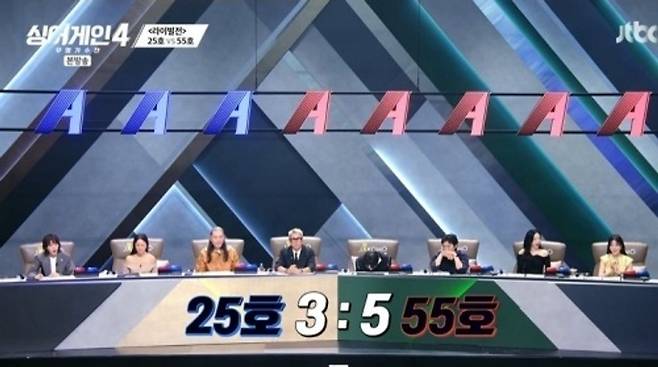 이날 방송에선 55호와 25호의 라이벌전도 펼쳐졌다. 55호는 선공에 앞서 태연을 지목했다. 55호는 "1, 2라운드 모두 한 분에게만 어게인 버튼을 못 받았다. 태연 심사위원님"이라며 "이번에는 어게인 버튼, 코멘트를 받고 싶다"고 덧붙였다. 태연은 당황하며 웃었다.