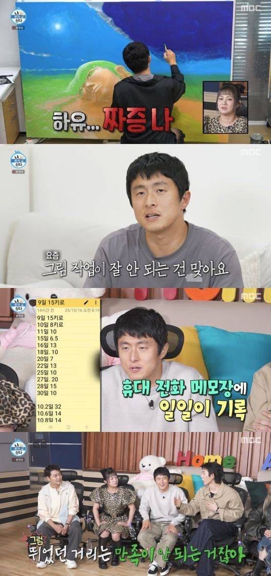 이날 그림 작업 몰두에 실패한 기안84는 “작업을 계속 이래저래 해보는데 방송 일도 하고 달리기도 하면서 집중력이 떨어지는 건지, 몰입이 안 되는 건지 작업이 잘 안되는 건 맞다”라고 슬럼프를 고백했다.