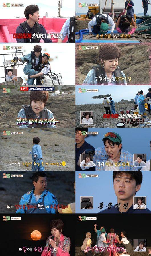 김연자도 “많이 잡고 싶다”며 의욕을 불태우며 갯바위를 수색했다. 살아있는 해산물을 ‘내손내잡’하는 건 처음인 김연자는 처음에는 해삼도 잡지 못하고 무서워했지만, 나중에는 박하지도 잡으며 발전한 모습을 보여줬다. 직접 잡은 해삼으로 ASMR을 하면서 “별표 많이 쏴주세요”라고 말하는 김연자를 보며 스튜디오에서 송가인도 “너무 사랑스럽다”라며 빠져들었다.