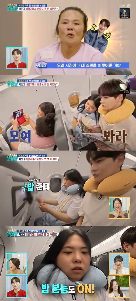 박서진은 외국인 승무원이 다가오자 힘겹게 주문을 했다. 옆에 있던 박효정이 박서진을 지켜보다가 직접 나서서 주문을 거들었다.