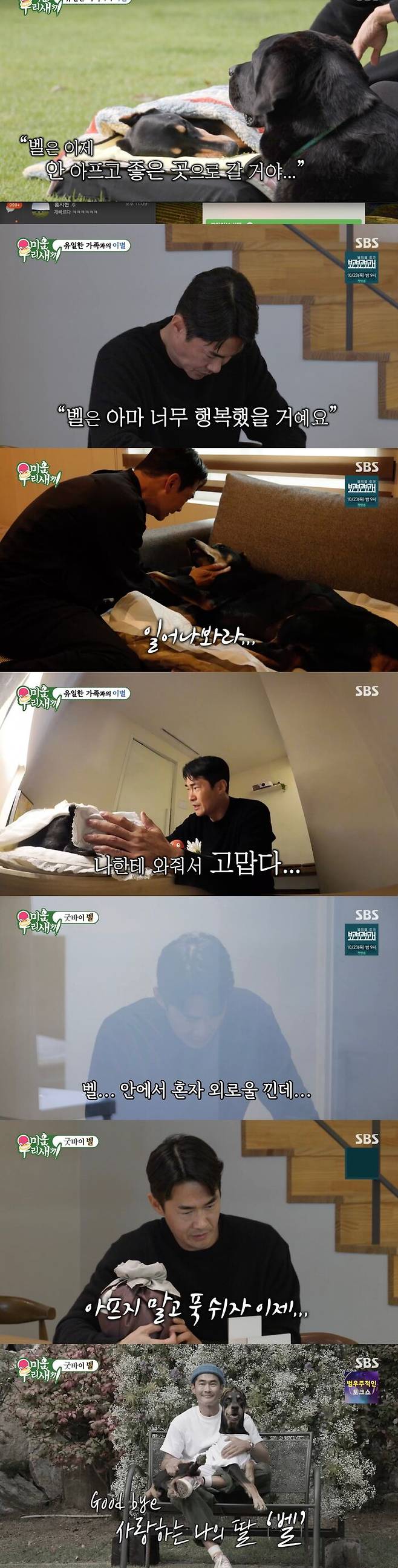 영상통화로 벨의 마지막 모습을 지켜보았던 배정남. 그리고 배정남은 곁에 없지만 계속 벨을 불렀고, 이에 재활센터 관계자는 "그래도 아빠 목소리를 들으면서 갔으니까 벨은 행복했을 거야"라고 위로했다.