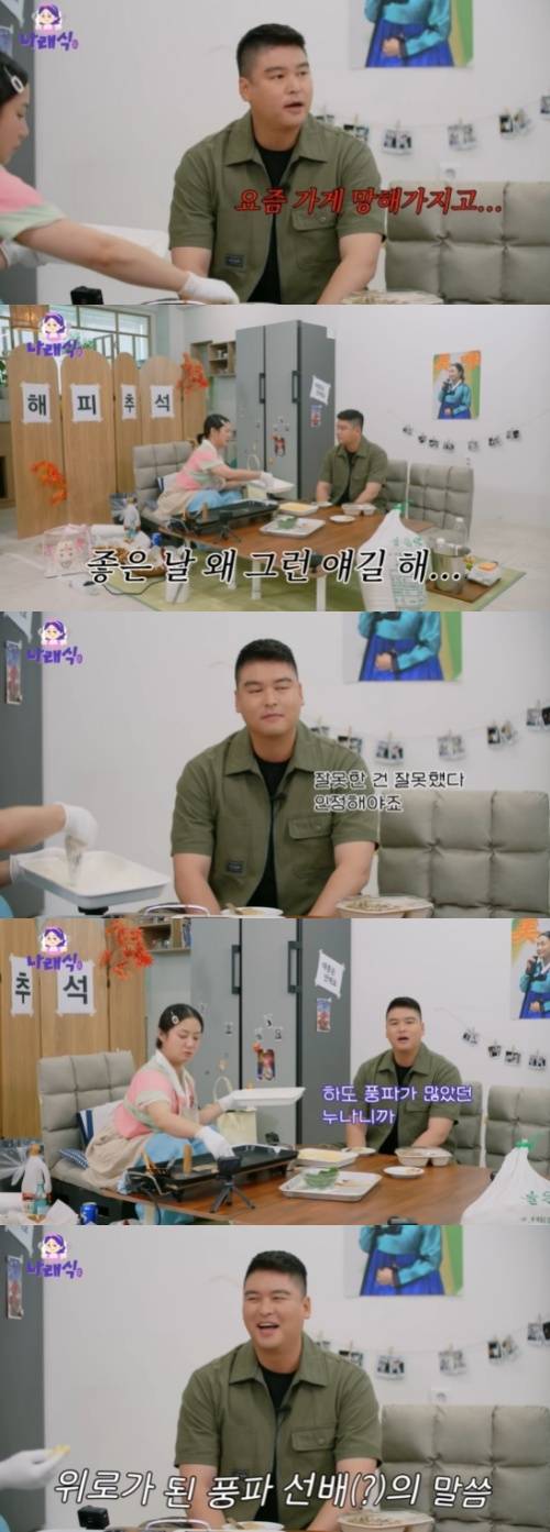조언을 다시 시작한 박나래는 "이 사람 세상에선 그 힘든게 전부겠지만 밖에서 봤을 때 우리는 티끌같은 존재라서 그게 또 아무렇지 않을 때가 있다. 다 때려맞아도 언젠가 괜찮은 날이 온다"고 덧붙였다.