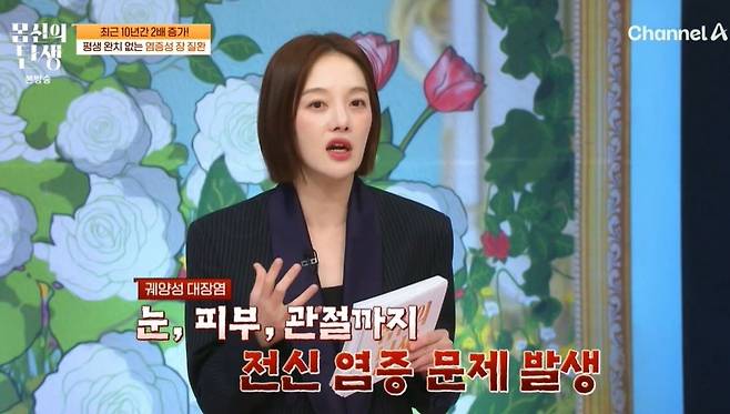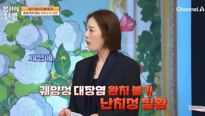 장염은 1~2주 내 자연스럽게 회복하지만, 궤양성 대장염은 장 전체에 걸쳐 증상이 반복된다고. 전문의는 "완치의 개념이 없는 난치성 질환"이라고 말해 충격을 안겼다. 황보라는 "완치가 안 되고, 장만 아니라 전신에 문제 발생할 수 있다니 큰일 났다"라고 했고, 유민상은 "더 무서운 건 이렇게 무서운 질환인데도 잘 몰랐단 거다"라고 밝혔다.