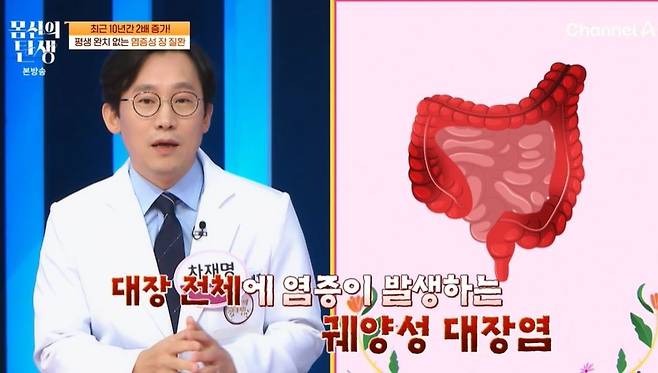 내과 전문의는 궤양성 대장염에 관해 "대장은 음식물이 마지막으로 배출되는 장기인데, 대장 전체에 염증이 발생하는 걸 말한다"라며 "궤양성 대장염의 친구인 크론병과 비슷하다. 궤양성 대장염은 대장에만 염증이 생기는데, 크론병은 입, 위, 소장, 대장, 항문까지 소화관 전체에 염증이 생길 수 있다. 둘을 합쳐서 염증성 장 질환이라고 부른다. 최근 국내에 10년간 약 2배 정도 환자가 늘어났다"라고 설명했다.