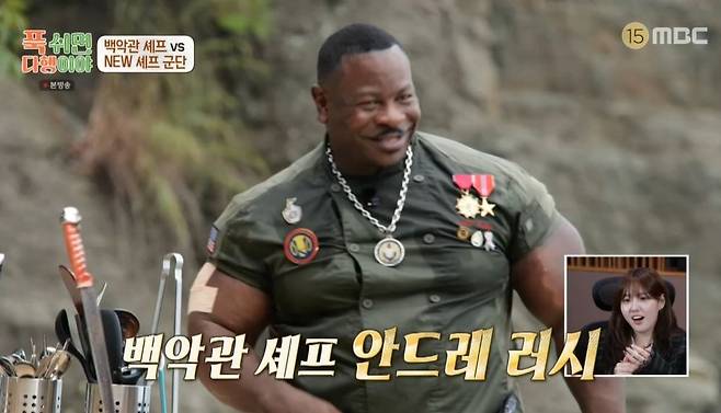 그 사이 '백악관 셰프' 안드레 러시가 또다시 등장했다. 안드레 러시는 "무인도에 처음 왔을 때 너무 놀라운 순간이었다. 힘들어도 언제든 다시 뛰어들고 싶은 곳이었다. 안정환이 절 다시 불렀고, 그 덕에 무인도에 다시 와서 기쁘다"라고 밝혔다. 이에 안정환은 "이번에 제대로 한번 붙어보라고 보냈다"라고 덧붙였다. 안드레는 칼을 꽂은 후 칼을 갈기 시작했다.
