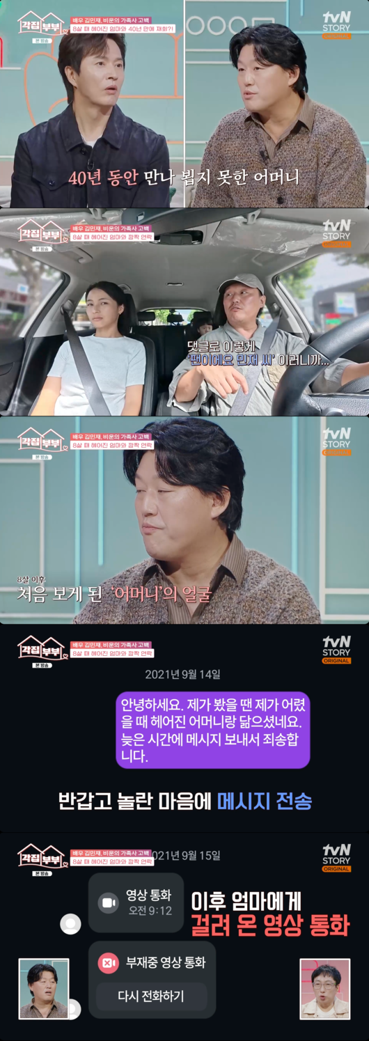 [OSEN=박근희 기자] '각집부부’ 김민재가 8살 이후 40년 가까이 단절되었던 친어머니와의 가슴 아픈 가족사를 고백했다.