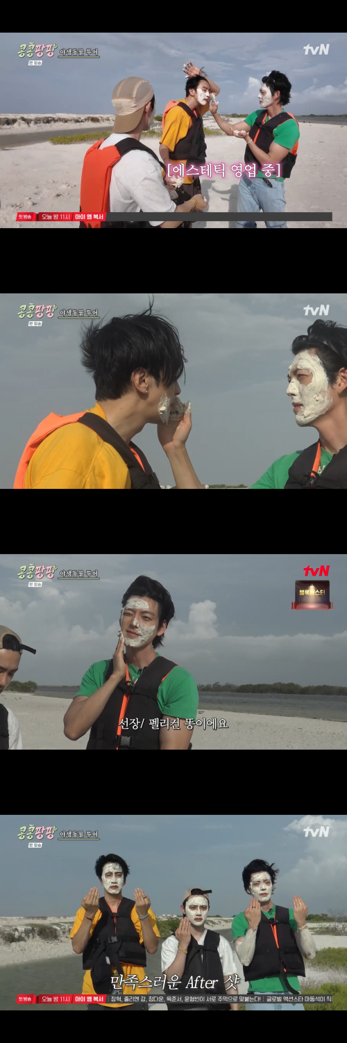 갑자기 선장이 하얀 지점토 같은 진흙을 파내 세 사람에게 건네며 “얼굴에 발라보라”고 권했고, 이들은 마야식 진흙 스파 체험에 나섰다.