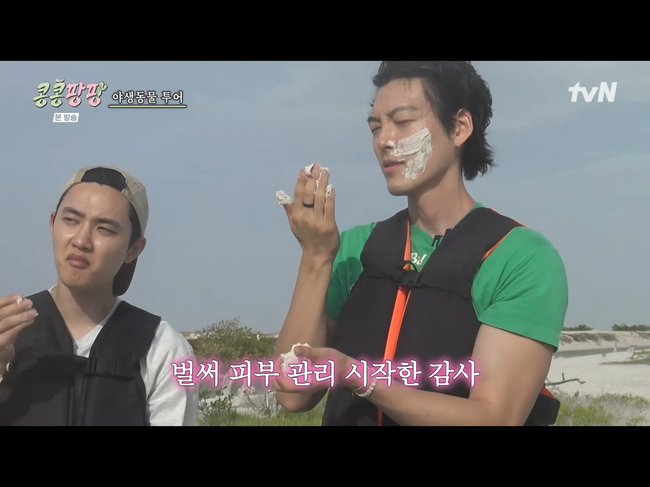 김우빈은 처음에는 의심없이 진흙을 얼굴에 바르다가, 선장이 “펠리컨 똥”이라고 설명하자 당황한 표정을 감추지 못했지만 이내 만족하는 듯 온 몸에 발랐다.