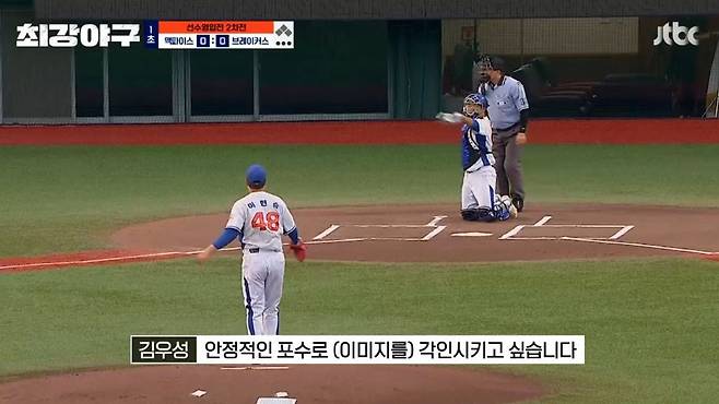 이날 브레이커스는 1회초를 무사히 넘긴 데 이어 1회말에 선취점을 내며 기세를 올렸다. 이현승에 이어 문성현과 호흡을 맞추게 된 김우성에 이종범 감독은 "투수에게 계속 말을 걸고 네가 리드를 해야 한다"라고 조언했다.