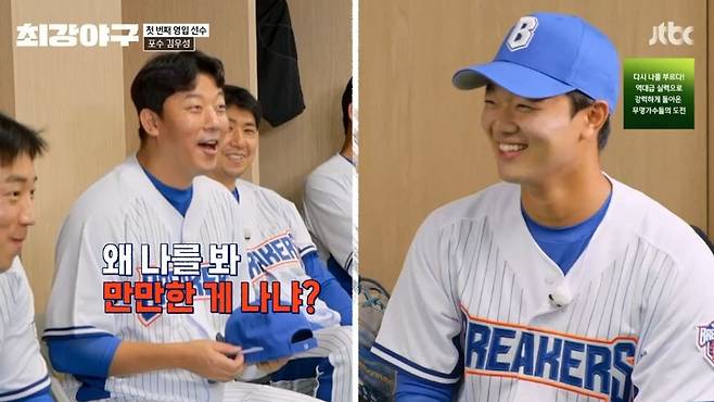 이어 긴장된 얼굴로 라커룸을 찾은 김우성은 브레이커스 선수들과 동료로서 첫 인사를 나눴다. 이에 허도환이 "유니폼 잘 어울린다"라며 축하를 건넸다면 이대형은 "이제 우리 팀인데 편하게 있으라"며 그를 배려했다.