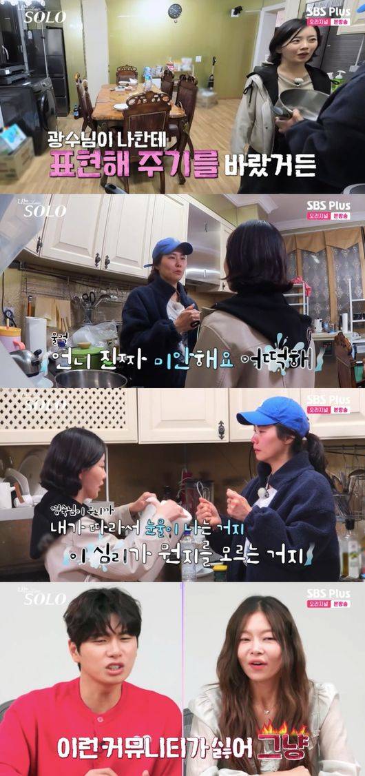 계속해서 영숙은 “좀 마음이 아프네. 언니한테도 너무 미안해요. 언니가 그 말 하는데 순간 너무 마음이 아파서 미안했다”라고 오열했다. 이에 정희는 “내가 울린 것 같아서 미안하다”라고 말했다.