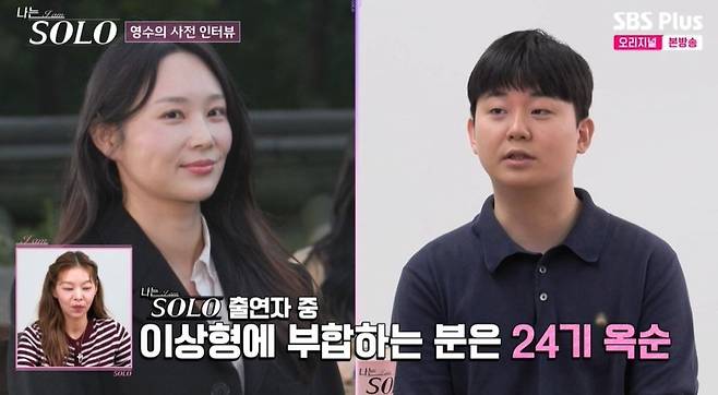중국에서 살았다는 영수는 "초중고를 중국에서 나왔다. 영어는 한국어만큼 한다"라면서 3개 국어를 한다고 자신했다. 외적인 이상형은 24기 옥순이라고.