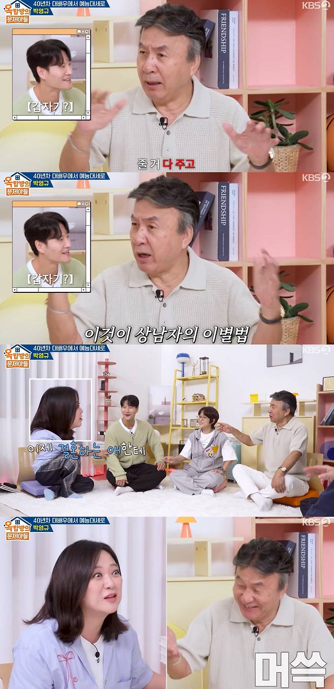그러자 김숙은 "이제 결혼하는 애한테 '줄 거 다 줘라'고 조언하신 거냐"라고 말해 박영규를 당황하게 만들었다.