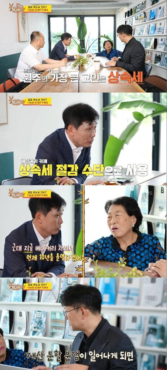 연예계 대표 자산가인 전원주는 상속세와 관련된 부분을 궁금해 하면서 "내가 가고 나면 아들 둘이 재산 싸움 하지 않을까"라고 걱정했다.