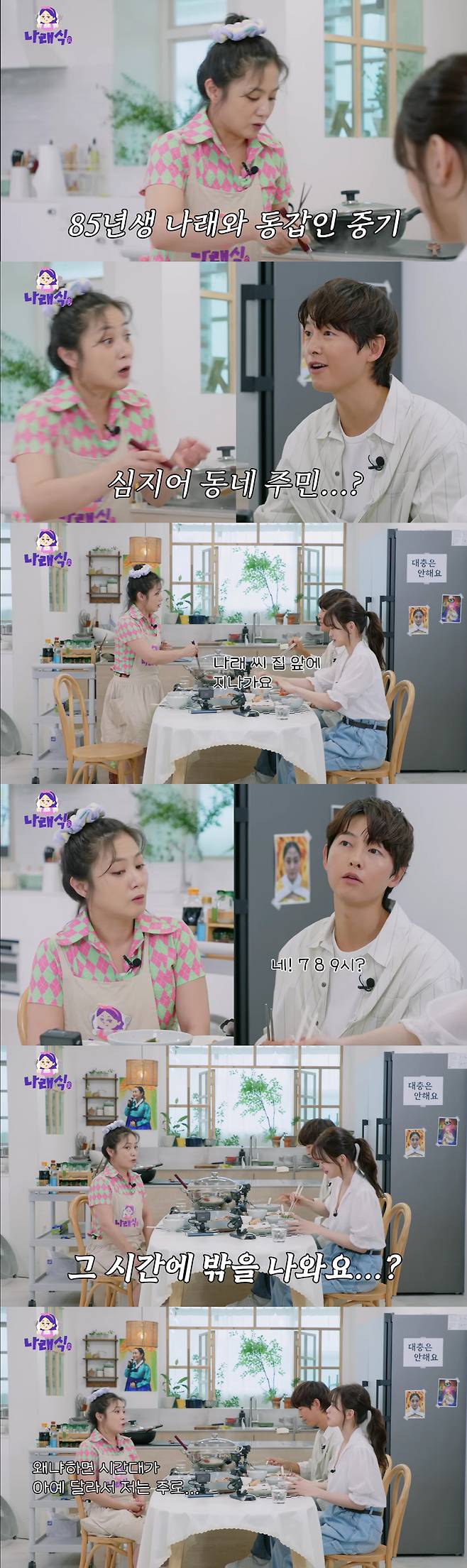 특히 송중기는 자신이 1985년생으로 박나래와 동갑임을 언급하며, 두 사람이 이태원에 사는 동네 주민이라는 사실도 공개했다.