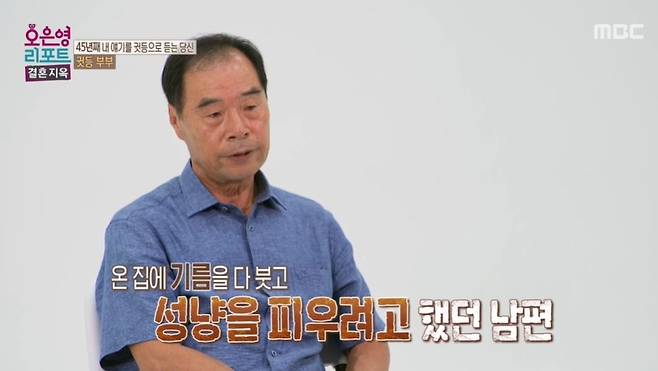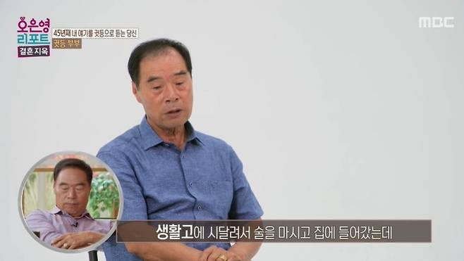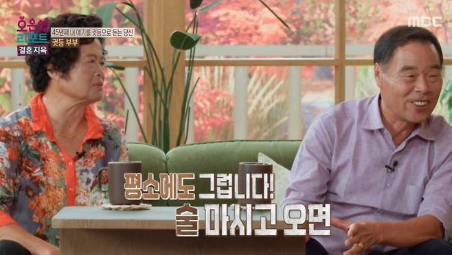 [TV리포트=남금주 기자] 45년째 결혼 생활 중인 남편이 만취해 술주정을 부리고, 폭력적인 언사로 충격을 안겼다.