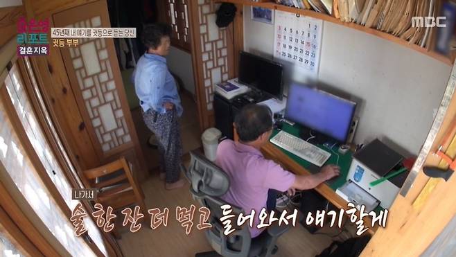 남편은 "바가지를 긁는다고 하지 않냐. 술 먹고 들어오면 자꾸 뭐라고 한다. 그만하라고 했으면 자제를 하면 괜찮은데, 계속 잔소리를 하면 기분 나쁘다"라고 밝혔다. 아내는 남편과 대화하러 서재에 따라왔지만, 남편은 눈도 마주치지 않고 무시했다. 아내는 "한번 삐지면 몇 달씩 얘기 안 하고, 내가 뭘 그렇게 잘못했냐"라고 했지만, 남편은 술 마신 상태라며 대화하지 않았다. 남편은 "정 얘기하고 싶으면 내가 술을 더 마시고 들어올게"라고 말해 모두를 의아하게 만들었다.