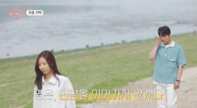 마지막으로, 두 커플의 최종 선택 현장이 공개됐다. 전날 밤 ‘눈물바다’가 됐던 동건X명은은 “이제 울지 말자”고 약속하며 서로 등을 돌린 채 최종 선택에 들어갔다. 긴장과 떨림이 가득한 분위기 속, 동건이 먼저 뒤를 돌아보며 명은을 선택했지만, 명은은 그대로 자리를 떠났다. 직후 명은은 제작진과의 인터뷰에서 “호주에서 동건을 선택할 때는 알아가고 싶은 궁금증이 많았지만, 한국에서 만나보니 설렘보다는 편안한 감정에 가까운 것 같았다”고 최종 선택을 포기한 이유를 밝혔다.