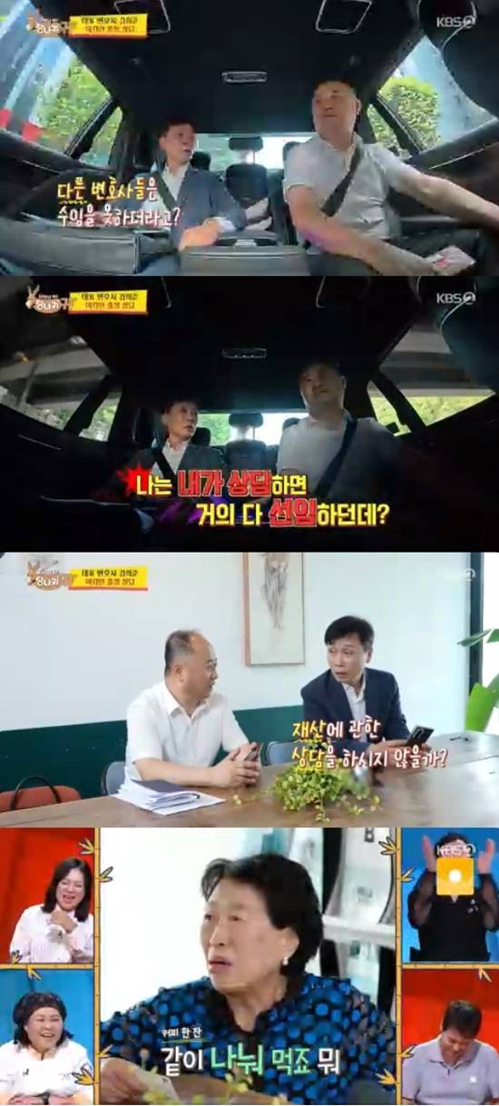 전원주는 집에 가져가서 먹겠다면서 커피를 조금만 마셨다. 전현무와 김숙은 김희준에게 전원주로부터 수임료를 못 받을 것 같다며 웃었다.
