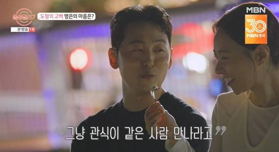 명은은 "내 친구들이 '네 머리 위해서 네가 뭘 하는지 다 알아서 흐뭇하게 바라보며 잘 맞춰 주는 사람을 만나라'고 말하더라. 그런 사람이려면 경험치가 많이 쌓인 사람이어야 되는 거잖아"라고 밝히며 9살 연상인 도형을 염두한 건지 의미심장하게 만드는 이상형을 언급했다