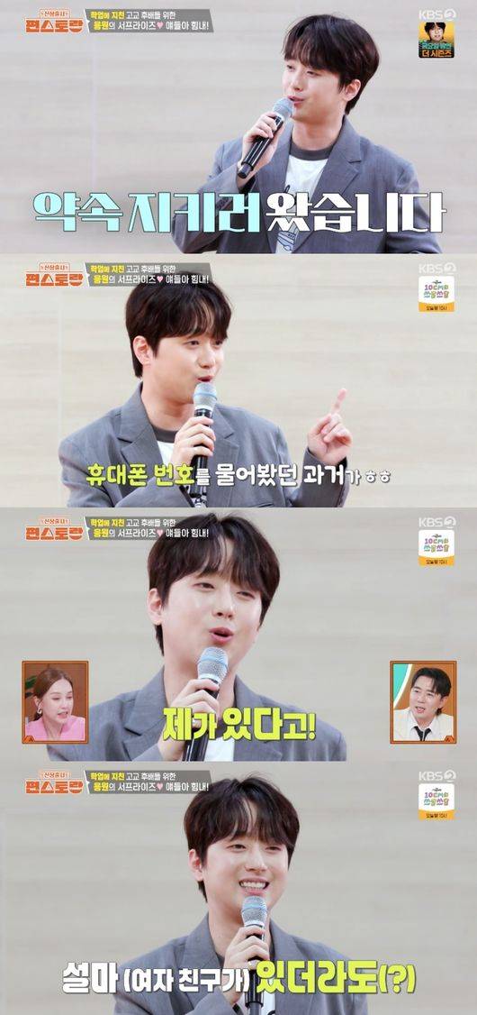 이어 “MC 보고 내려가면 2~3명 여고생이 저한테 휴대폰 번호 물어봤다”라고 자랑했다.
