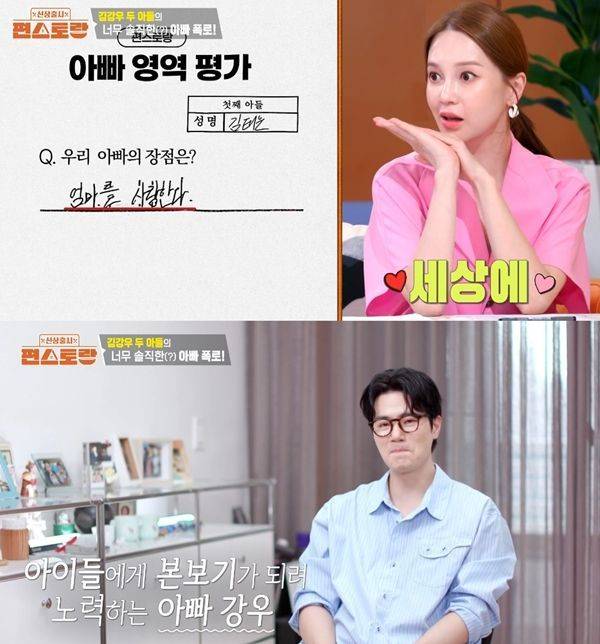 24일 방송된 KBS2 '신상출시 편스토랑'에서 김강우의 두 아들이 '아빠 영역 평가'서를 작성, 자녀들이 본 김강우의 모습이 공개됐다.