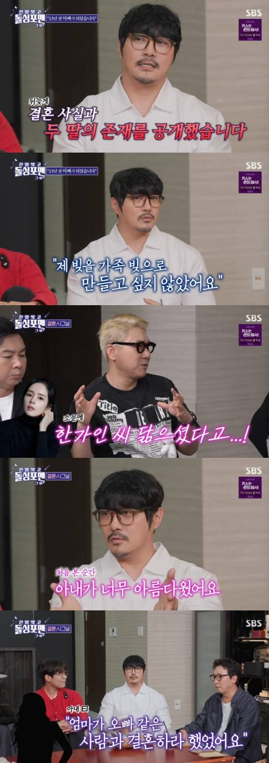 이어 "12년 만에 혼인신고를 했다. 그런데 둘째가 생겼다. 첫째를 아직 못 알렸는데 둘째를 알리는 게 그렇더라. 첫째 딸이 중학교 1학년 사춘기인데, 뒤돌아보니 바보 같고 비겁하고 못났던 아빠 같아 가족을 공개하기로 마음 먹었다"고 털어놨다.