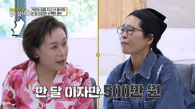 [TVis] 황석정 “한 달 대출 이자만 500만원”…박원숙 깜짝 (‘같이삽시다’)