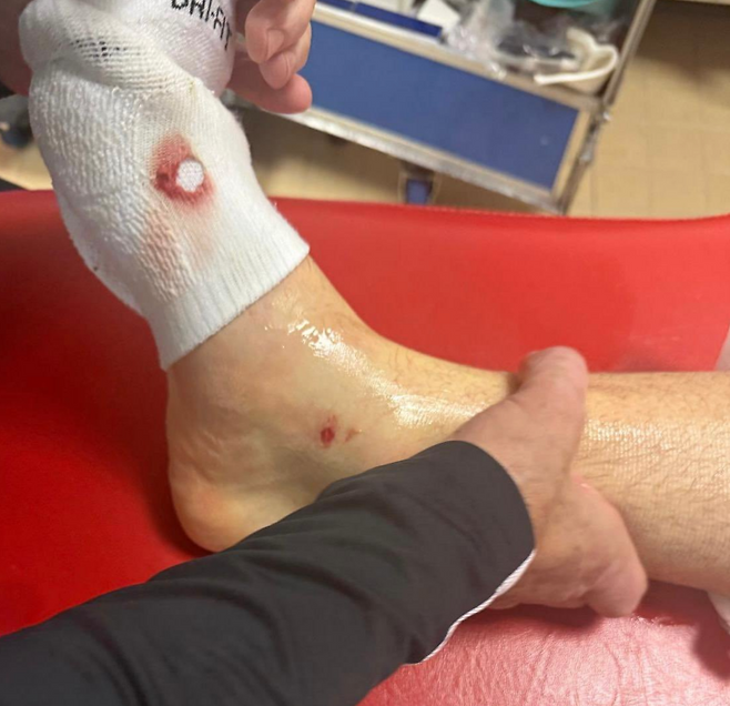 경기 후 슈발리에의 발목 상태가 공개됐다. 슈발리에의 오른쪽 발목에는 출혈 자국이 있었다. 그가 신었던 양말에 출혈 흔적이 선명하게 드러났다. 상처와 부상이 크지 않은 게 천만다행이다.