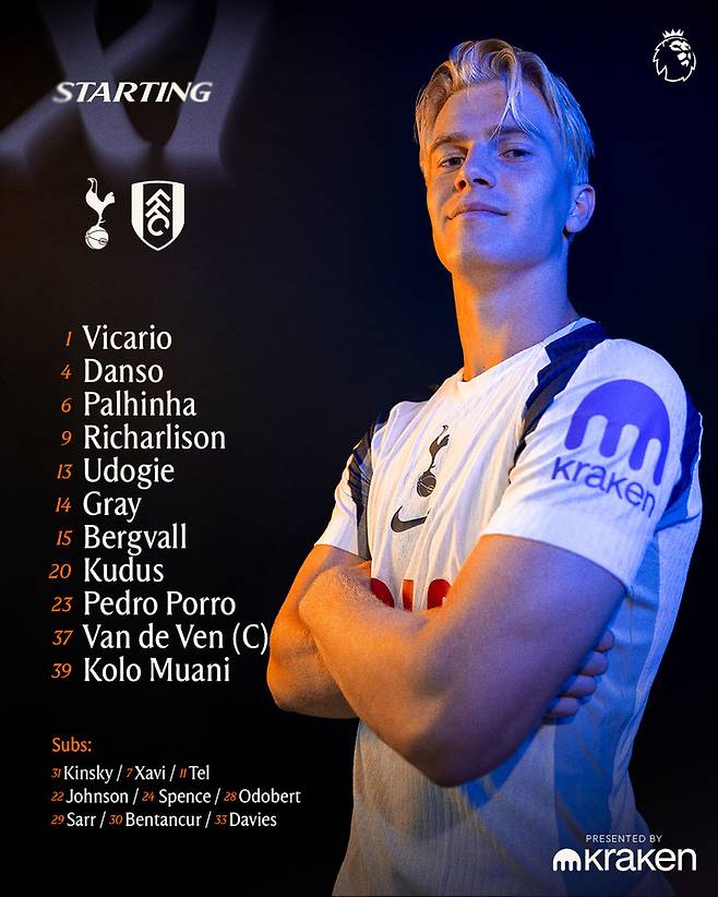 이날 토트넘은 히샬리송과 콜로 무아니, 루카스 베리발, 주앙 팔리냐, 아치 그레이, 모하메드 쿠두스, 데스티니 우도기, 미키 판 더 펜, 페드로 포로, 골키퍼 굴리엘모 비카리오가 선발 출전했다.