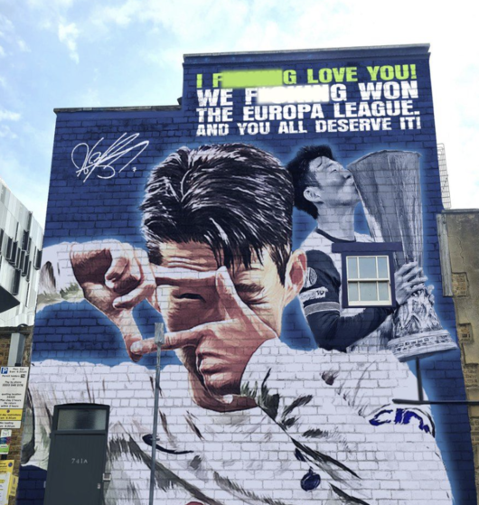 “손흥민에게 특별한 선물 준다더니 겨우 벽화였어?” 토트넘 팬심 대폭발 “쏘니 동상 세워라”