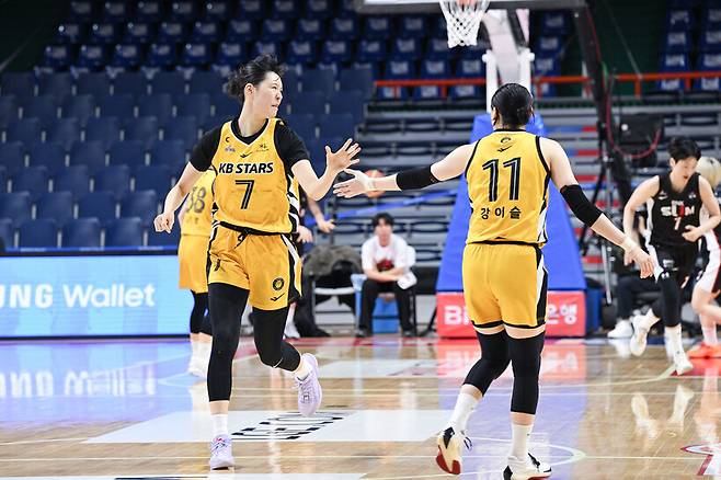 공동 2위끼리 맞대결에서 승리한 KB는 7승 4패를 기록해 부천 하나은행(8승 3패)에 이어 1경기 차 2위다.