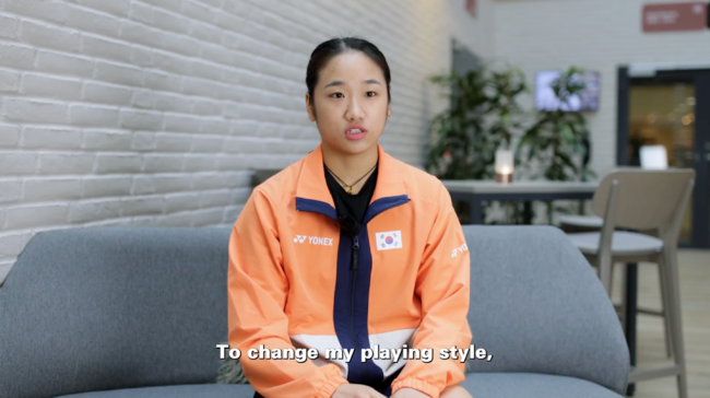 안세영은 "플레이 스타일을 바꾸기 위해 남자 선수들을 상대로 스파링하는 경우도 많다. 여자 선수들보단 남자 선수들이 더 빠르게 연습할 수 있는 상대가 되기 때문에 그렇게 하고 있다. 지금으로선 공격을 더 많이 개선하고 싶다"라고 밝혔다.
