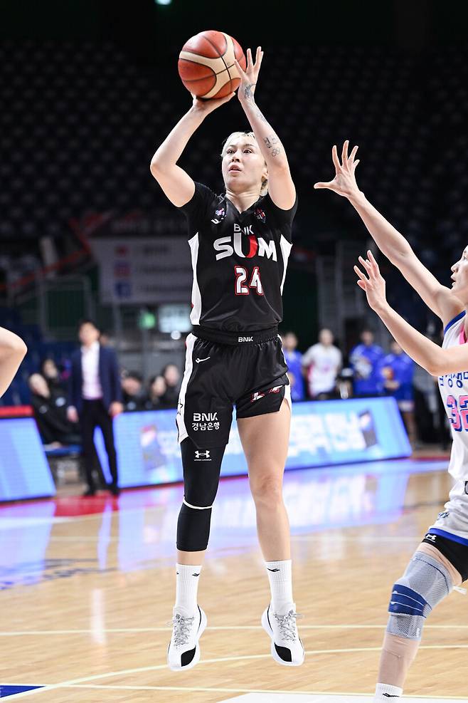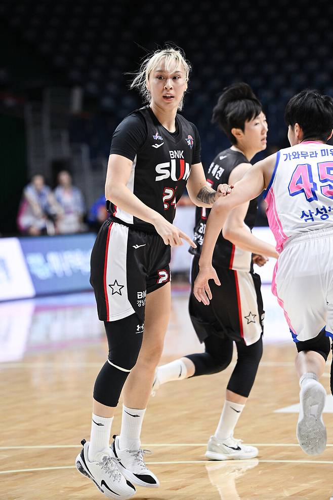 김소니아는 3일 부산사직체육관에서 열린 부산 BNK와 용인 삼성생명과의 BNK금융 2025~2026 여자프로농구 정규리그 첫 맞대결에서 23점 8리바운드 4어시스트 2스틸로 활약했다.