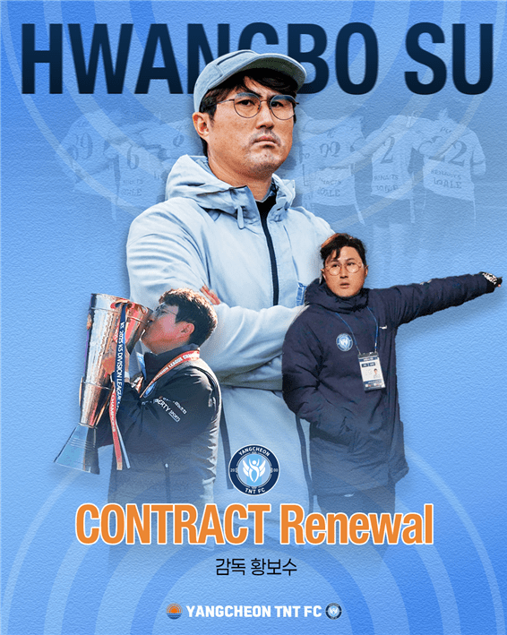 '한국축구 디비전 시스템의 모범 사례' 양천 TNT FC(대표 김태륭)가 2025 K5 챔피언십 우승을 이끈 황보수 감독과 재계약을 공식 발표했다.