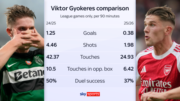영국 방송사 스카이스포츠는 19일자 보도한 정밀 분석 분석 칼럼을 통해 요케레스가 왜 아직 아스널의 확실한 해결사로 자리 잡지 못했는지를 데이터와 장면을 통해 설명했다.